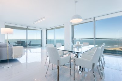 La master suite juega un papel importante, orientada al frente del edificio, con vistas espectaculares 180 grados desde Punta del Este a Punta Ballena.