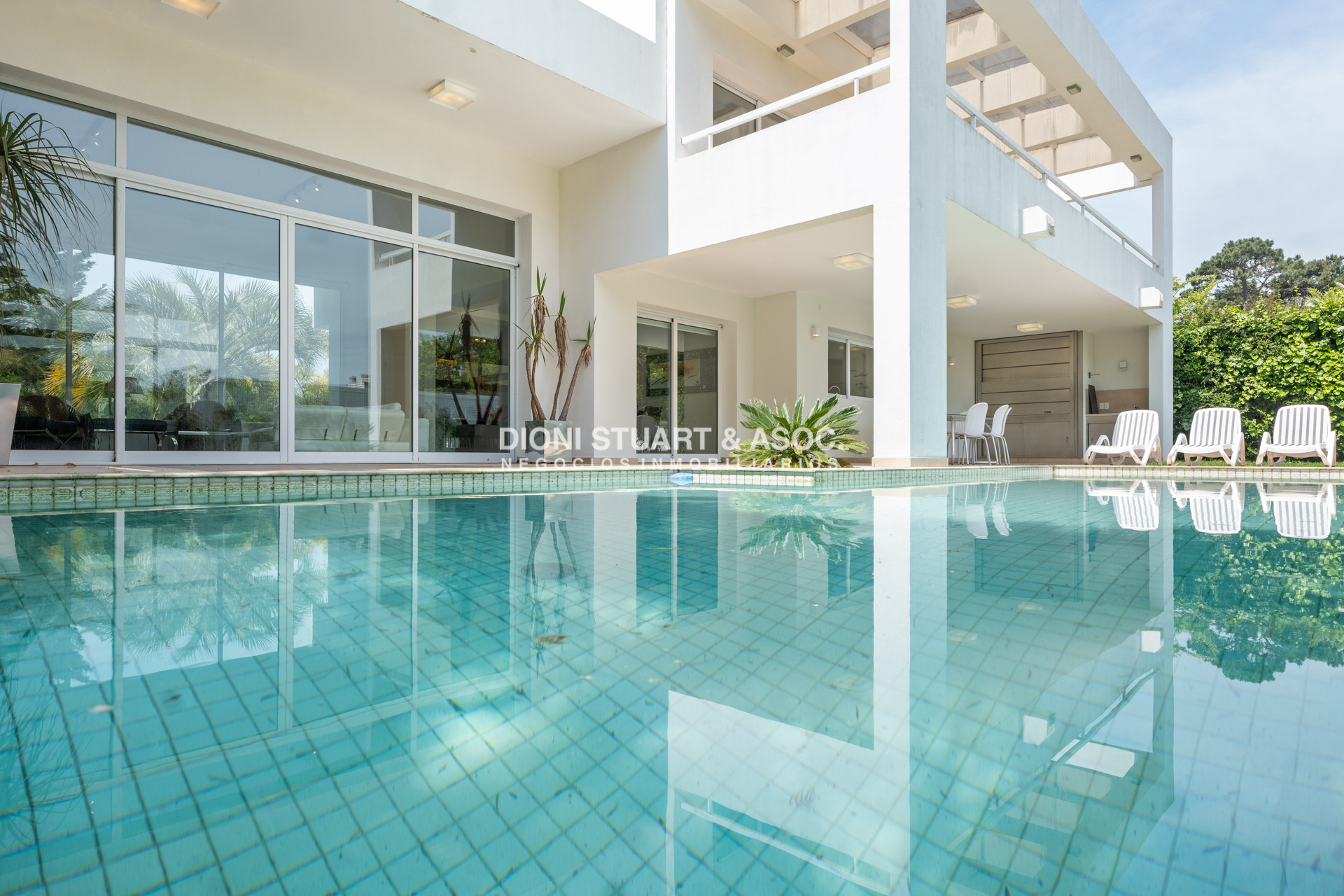 La casa en si se divide en dos plantas, obteniendo asi en planta baja un amplio living-comedor, un dormitorio en suite con placar empotrado, toilette y una comoda cocina con comedor diario, lavadero y dependencia con baño. En el segundo piso la casa cuenta con tres dormitorios en suite todos con terraza, y el principal con hiromasaje en el baño y vestidor walk-in. Todos los ambientes cuentan con aire acondicionado y loza radiante sectorizada. Cuenta con piscina climatizada.