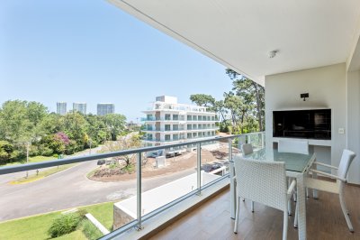 Comodo apartamento esquinero ubicado en el edificio moderno edificio EMERALD en Parada 18 Mansa, distribuido en dos dormitorios en suite y toilette, cocina definida, balcón con parrillero y vistas. La unidad dispone de dos lofts que se unen en planta baja a nivel de recepción, es decir, que usted dispone de dos dormitorios en su piso 2 y si baja hasta la recepción cuenta con dos dormitorios en suite y aire acondicionado, ideal como dormitorios de servicios.