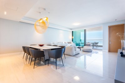 Unidad central de dos dormitorios en suite y dependencia de servicio con baño, cocina definida con lavadero y bbq grill. Amplio living-comedor con balcón al frente con vista de 180° desde la Peninsula a Punta Ballena. Rente esta propiedad y disfrute de las mejores vacaciones con el confort que esta unidad ofrece y los amenities mas completos y modernos de la Playa Mansa y Punta del Este.