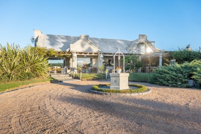 Espectacular chacra ubicada muy próxima a la Laguna del Sauce y a tan solo 12km de Solanas, ideal para quienes buscan un lugar de relajación y desconexión pero cerca de la ciudad. Superficie total de 8has rodeada de grandes tajamares. Casa de gran porte con 500 m2 construidos en el año 2012 y recientemente con una gran reforma, incluyendo baños nuevos, eléctrica nueva entre otros. Amplio living-comedor con grandes ventanales que te permiten ver a las sierras y la laguna con una excelente entrada de luz gran parte del día, toilette, 4 dormitorios en suite, tres en planta baja (estos tres con loza radiante sectorizada) y uno en segundo piso con balcón propio. La master suite tiene doble vestidor walk-in, ante baño y baño. Todos los dormitorios con Aire. Amplia cocina definida con isla. Cava de vinos, piscina exterior climatizada, gran galería al frente de la casa con vista a la laguna y a la puesta del sol, comoda barbacoa. Cuenta con casa de caseros completa y galpón.