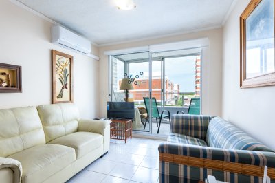 Cómodo departamento ubicado en Torre Triangulo de 1 dormitorio y medio, living-comedor, cocina kichinette, baño (reciclado) y balcón con una agradable vista que desde donde parcialmente se ve el mar y la isla de lobos. Expensas accesibles para una torre con todos los amenities y en una ubicación estratégica en parada 2 Brava, a 200m del mar y de una de las principales arterias de acceso a Punta del Este con variedad de servicios a disposición todo el año. Ideal para renta. La unidad cuenta con garage.